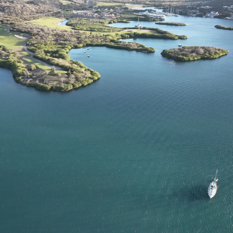 Notre balade commence par l’exploration de la baie de Spanish Water. Ce plan d’eau abrité est célèbre pour ses paysages contrastés : d’un côté, les plus belles villas de l’île nichées sur les collines, de l’autre, des zones de mangroves sauvages. C’est le moment idéal pour profiter du calme de l’eau avant de passer aux choses sérieuses.